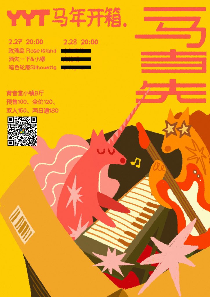 2月27号,我们首先邀请三组乐队陪你来马年的第一场“开箱”。暗色轮廓用迷幻的合成器编织光影,带你向内寻找自我;全女子阵容消失一下&小缪最懂你的打工魂,邀你暂时逃离恼人的工作,在这里大口深呼吸;玫瑰岛则用细致律动与丝滑和声铺开一整晚的时间感。不急着靠岸,在音乐里搭一座只属于今晚的乌托邦小岛。